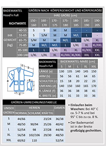 Extra lang, 100% Baumwolle Frottee-Bademantel, Stoffgewicht, 440 g/qm, Bademantel-Gewicht, ca. 2 kg