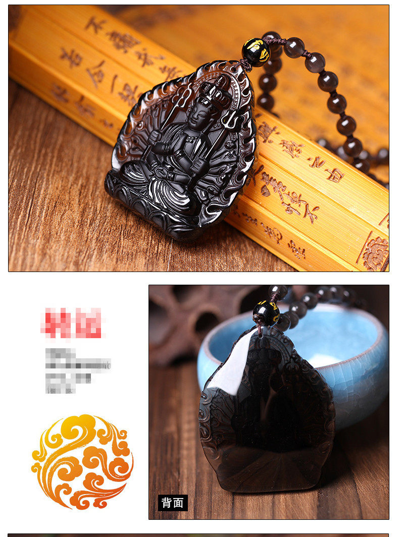 开光冰种黑曜石千手观音菩萨生肖属鼠本命佛守护神吊坠