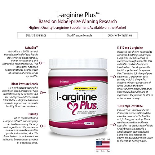 L-arginine PlusTM Cardio Health Formula is an affordable alternative to the expensive products first introduced by network marketing companies. Now New and Improved! L-arginine PlusTM, Cardio Health Formula: Powder Supplement contains 51100mg L-arginine, 1010mg L-citrulline, as well as Vitamin B6, Vitamin B12, Vitamin D3, Vitamin C, Xylitol, Red Wine Extract and 72 trace minerals per serving. L-arginine PlusTM also contains Astragin which sets our product aside from all the competition! AstraGin is a 100% All Natural ingredient blend of two highly fractionated plant extracts, Panax notoginseng and Astragalus membranecous. This ingredient has been demonstrated to promote the absorption of amino acids up to 66%. When manufacturing L-arginine PlusTM, our company decided to use only the very best ingredients. We wanted to do more than make a similar product at a better price. We chose instead to make what we believe to be a superior product at a superior price. Because of that commitment, we buy only the highest-grade ingredients. Furthermore, we test the quality and potency of every ingredient that enters our facility. L-Arginine Plus is the most EFFECTIVE L-Arginine product on the Market! Give us 2 weeks and you"ll be surprised...and so will your doctor! All orders receive priority handling at no charge and FREE shipping.Feature