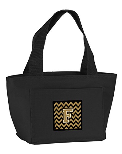 Caroline's Treasures CJ1050-FBK-8808 Letter F Chevron Black and Gold Insulated Lunch Bag, Large, Multicolor