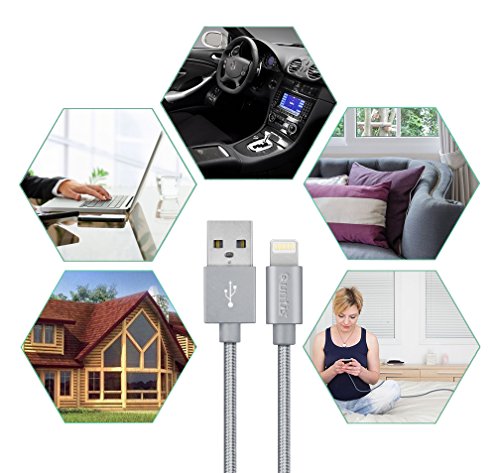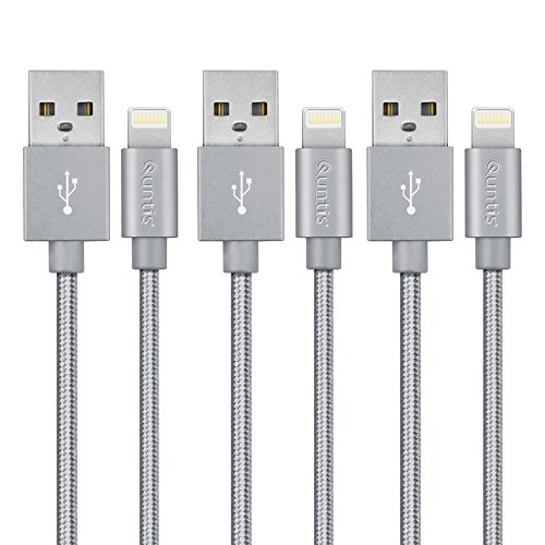 Quntis(TM) Durable Braided USB Charging Cable for iPhone 6s 6Plus,iPad Air iPod(Compatible with iOS 9) Lifetime Guarantee (3ft 6ft 10ft Mix)-Gray