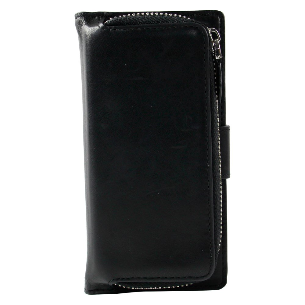 Two easy-to-remove card holders and large pockets with bills, receipts, business cards.