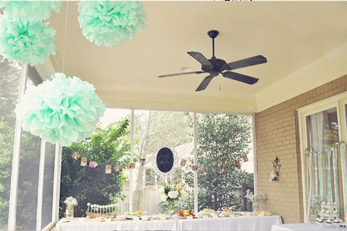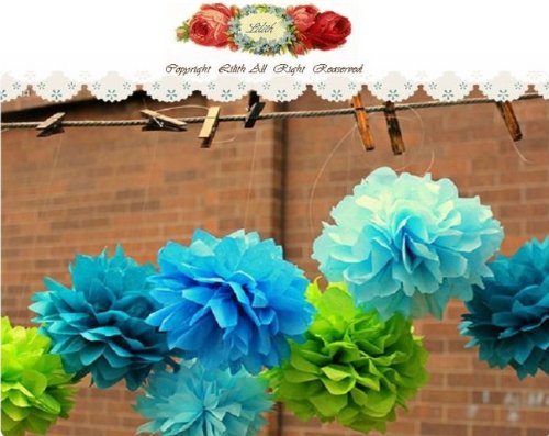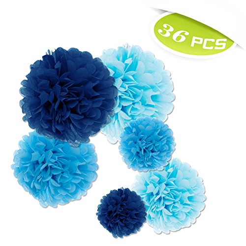 (Price/36 PCS)Aspire 36 Pcs Paper Pom Poms Blue Tissue Paper Flower Mixed Sizes Baby Shower Wedding Party Favors