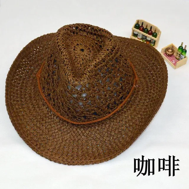 | [해외]여름 스타일의 밀짚 카우보이 모자 남녀 중공 서양 모자 2015 해변 Sunhats 느꼈다 파티 캡 남자 여성 |