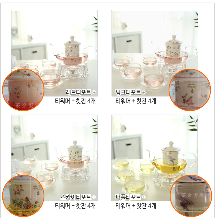 유리티포트+티워머+찻자4세트