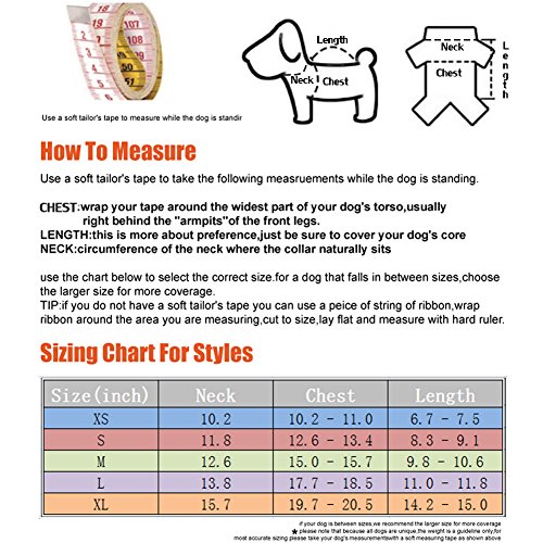 -. Feature : High Quality for comfortable, achive fit. / Not all dogs' measurement match the table reference at the three points (Chest*Length*Puppy Weight) at the same time,please give the priority to Breast Girth.If the size your measured is in-between two sizes, please select the larger size.All the detailed size is shown in our picture.Size:XS,S,M,L,XL. / Makes your dog warmer and more stylish,cool,attractive. / Humanized design with the button of the cloth,makes your pet more lovely,fashion / Perfect for walking,jogging keeps pet safe.