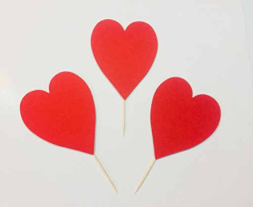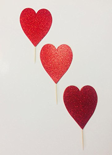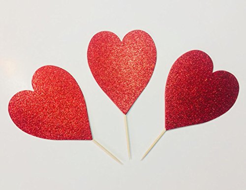 Valentine's Day Cake Topper Glitter Cardstock Color Red 3pc Pack Decoration 5.5 X3 inches aprox