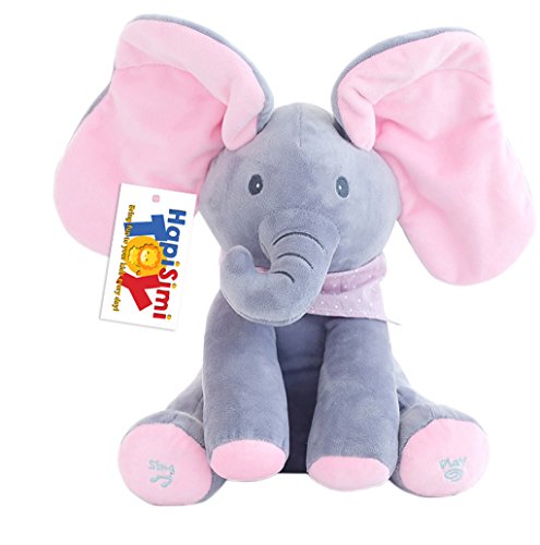 -. Binding : Toy -. Brand : Hapisimi Love Toys -. Color : Multicolor -. EAN : 8699482440156 -. Feature : ✅ Super-cute elephant animated plush who can play peek-a-boo/hide and seek game and sing a song / ✅ Ears swing/flap during play to delight baby (You press the left foot to play an interactive game of peek-a-boo and the right to hear the song "Do Your Ears Hang Low" in a cute child's voice. Ears move and flap during play) / ✅ High-quality Material: Soft plush surface; Stuffed material is soft pp cotton. Bring comfortable feeling to your kid and release the stress. / ✅ Three (03) AA batteries are required but NOT included with the package due to safety reason during transportation. We sest you to purchase the rechargeable battery to save battery cost for long-term usage / ✅ Height: 14 inches (33.56 cm) as showed in product photo -. IsAdultProduct : 0 -. Label : Hong Kong -. Manufacturer : Hong Kong -. ProductGroup : Toy -. ProductTypeName : TOYS_AND_GAMES -. Publisher : Hong Kong -. Size : 14 inches -. Studio : Hong Kong -. Title : Hapisimi Peek a boo Plush Elephant Play Hide and Seek Electric Toys Baby Cuddle Doll, Music Animals. Stuffed Elephant