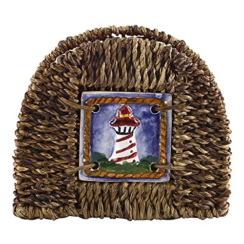 -. Brand : Nantucket Home -. Color : Brown -. EAN : 0000030343290 -. Feature : Made of woven abaca with a ceramic tile accent / This napkin holder brings maritime flavor to your tabletop. Woven abaca is accented with a single decorative ceramic tile featuring an iconic lighthouse. This holder makes a handy and handsome addition to your counter or tabletop any time of the year / Handpainted tile with lighthouse decorates front of holder / Great for buffet tables and picnics, or everyday display on your kitchen table or counter / Measurements: 6"L x 2.5"W x 5.5"H -. Label : Nantucket Distributing -. Manufacturer : Nantucket Distributing -. PackageQuantity : 1 -. ProductGroup : Kitchen -. ProductTypeName : KITCHEN -. Publisher : Nantucket Distributing -. Studio : Nantucket Distributing -. Title : Nantucket Home Woven Abaca Napkin Holder with Lighthouse Tile -. UPC : 000030343290
