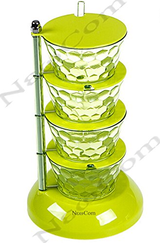 Newcom 4-Tier Salt Box,Spice Container,Seasoning Organizer,Spice Rack(Green)