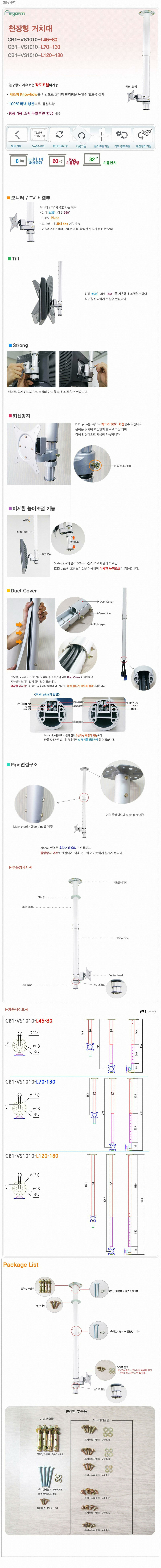 - 품명 및 모델명한국랩 Anyarm CB1-VS1010-L45-80 천정형 거치대