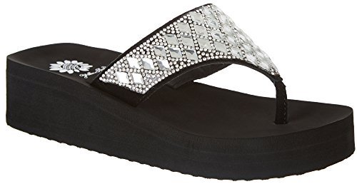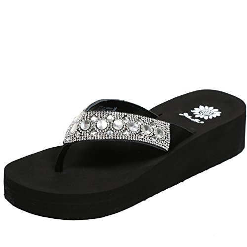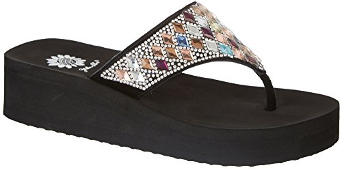 Studio : Yellow Box Publisher : Yellow Box Binding : Apparel Product Description Perri flip flops by Yellow Box takes casual flip flops to the next level with platform wedge heels, cushioned footbeds jewel embellished uppers. Superior comfort with Yellow Box's foam footbed construction. 0