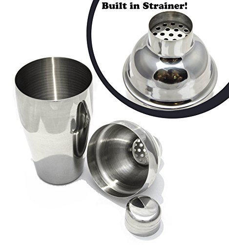 - ✓HIGH-QUALITY - Made from BPA free, rust-proof stainless steel, this cocktail shaker is 3 pieces with a built in strainer. It not only looks fantastic but is built to last. It's guaranteed not to rust, leak or lose its quality over time. It can even be safely cleaned in the dishwasher!