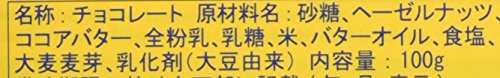 原材料:砂糖、ヘーゼルナッツ、ココアバター、全粉乳、乳糖、米、バターオイル、食塩、大麦麦芽、乳化剤(大豆由来)
