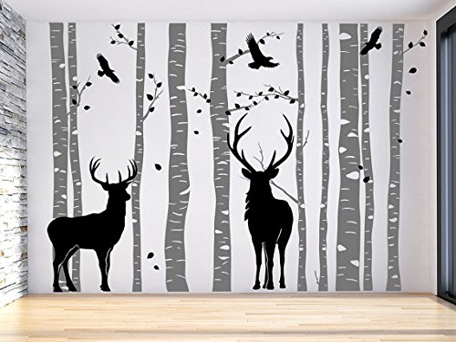 -. Title : Large Deer Tree Wall Decal Large Tree Wall Sticker, Gray Birch Tree Wall Decal,Vinyl Family Tree Decal, Reindeer Tree Decal,Birch Tree Sticker Nursery decal for kids and living room