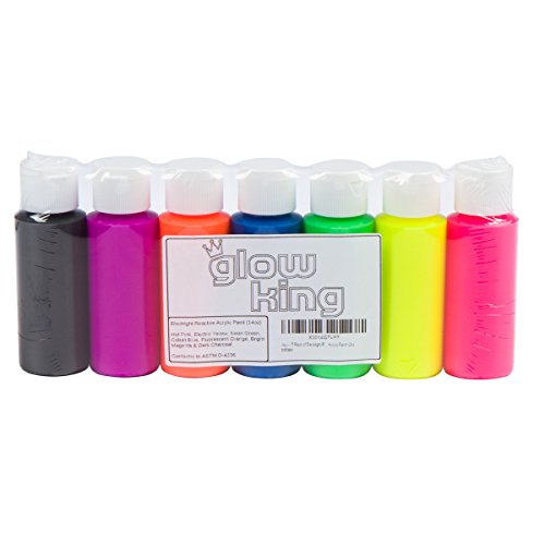7-Pack of Blacklight Reactive Neon / Fluorescent Acrylic Paint (2oz bottles)