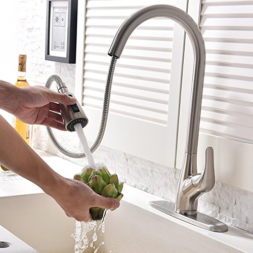 SHACO Brushed Nickel Stainless Steel Sprayer Single Lever Single Handle Pull Out Kitchen Faucet With Sprayer,Pull Down Sprayer Faucet