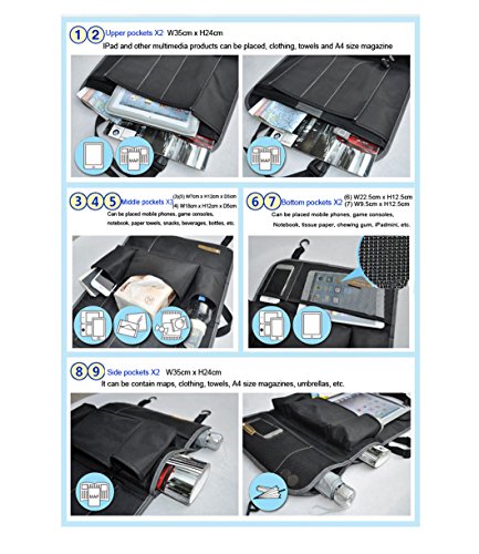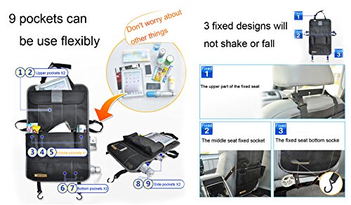 * Spaco Multipurpose Back seat Organizer is a Complete car storage and organizers solution, which will give you a complete, easy and pleasant travel experience, the back seat organizer can serve you as an excellent kick mat and protect your car seats from kicking feet,also can serve as IPad and Tablet Holder. It Organize your surroundings.