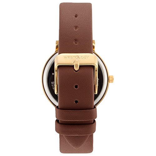 The Olivia Womens numbers chunky boyfriend watch by WRISTOLOGY is gorgeous and oh-so-dainty. She features an on-trend, super slim case in beautifully feminine gold, a super clean numbered and gold face, and a brown genuine leather strap. She looks great and transitions from day to night like a pro.