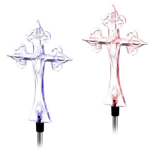 Solar Powered Cross Garden Stake Outdoor Color Change Lights (Set of 2)
