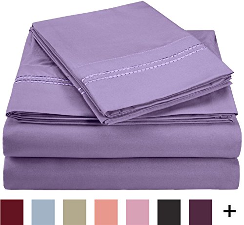 Superior 2-Line Bubble Embroidered Sheets, Luxurious Silky Soft, Light Weight, Wrinkle Resistant Brushed Microfiber, Full Size 4-Piece Sheet Set, Lilac
