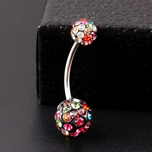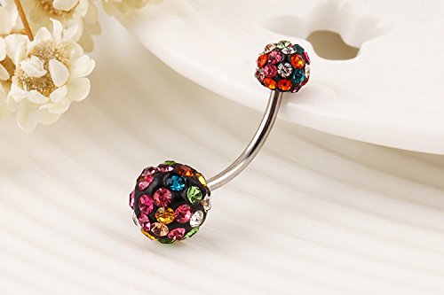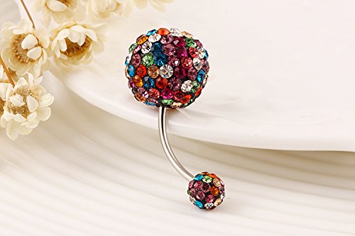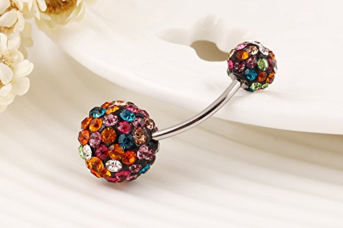 CrazyPiercing Colorful Crystal Bigger Ball Navel Ring Stainless Steel Piercing Belly Button Ring Body Fashion Jewelry Summer Style