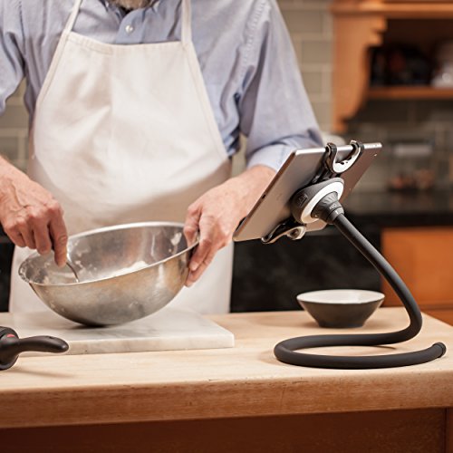 Flexible 40” (100cm) steel and silicone stand allows adjustment of screen height, angle, and position