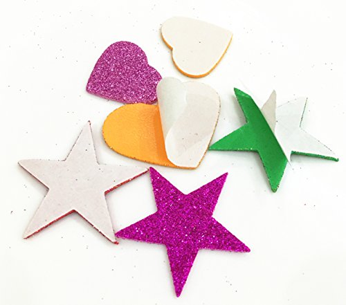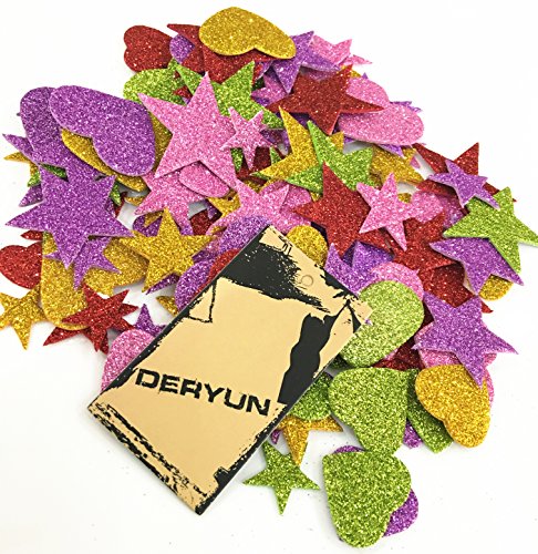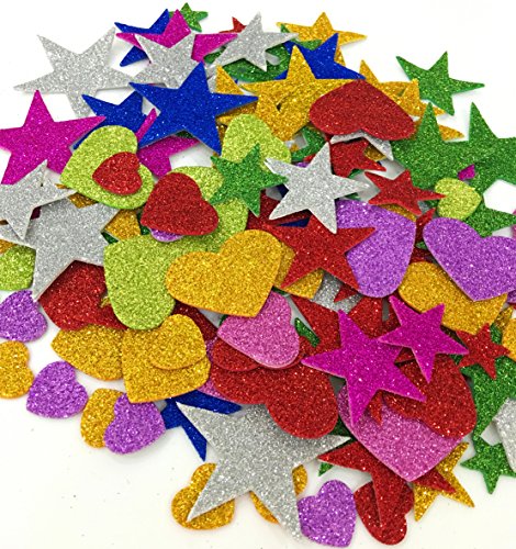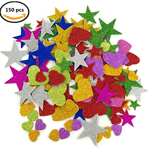 Deryun 1.9 Ounce 150 pieces Foam Glitter Stickers, Star and Mini Heart Shapes