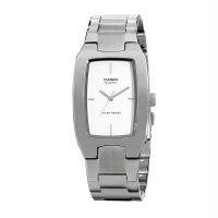 -. Title : Casio Mens Rectangle Analog Watch Silver w/ White Dial Batons - MTP-1165A-7C