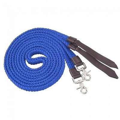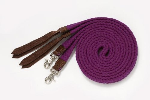 Studio : JT Intl Distributers Inc Publisher : JT Intl Distributers Inc Binding : Misc. Product Description Colorful and easy to grip, the Tough-1 Flat Cotton Split Reins are made of soft braided cotton in your choice of great color options. These split reins are reinforced with nylon popper, feature scissor snap bit ends, and measure seven feet long. About JT International For over 35 years, JT International has been providing riders with quality equestrian equipment designed to maximize the riding experience. With over 1,100 different types of products available, they offer new and time-honored favorites to riders all over the world. From tack to training supplies, JT International has each rider and their mount covered. Made of soft braided cotton. Available in your choice of colors. Nylon reinforced with nylon popper. Comes with scissor snap bit ends. Measures 7 ft. long. 0