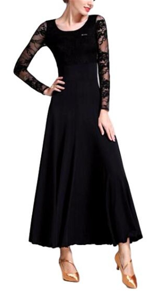 (Authentic) AUTHENTIC Ladies' Dance Dress Lace Long Sleeve Round Neck Modern Dance