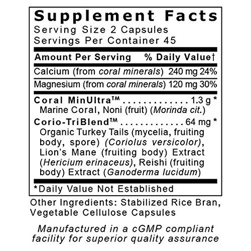 Coral Legend Plus is a coral-based formula that provides legendary mineral support for the bones, joints, teeth and an optimal alkaline pH. This formula features Coral MinUltraTM which contains premier quality calcium and magnesium from Sango marine coral minerals with an impressive 2:1 ratio. Corio-TriBlend TM is included to provide a biocompatible blend for complementary nutritional support.