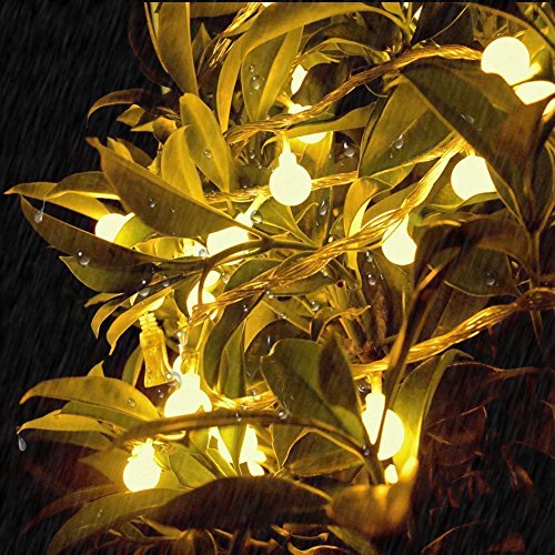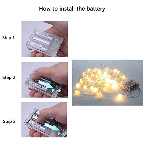 -. Feature : String Lights - 10m/33Feet 100 Led globe fairy Lights - The diameter of each globe ball is 0.7 inch.Ther are 4 inch long between each ball / Two Function Modes: Steady & Flash satisfy different requirement.The White Battery Box with Steady / Flash/ Off Feature that is Easy to Hide and Requires 3 AABatteries (Not Included). / Excellent Illumination -- 100 Warm white led bulbs create excellent illumination and a warm atmosphere, spreading light and cheer across a wide area. Decorative your garden, porch, bedroom, door, even the party with the string light. Add a beautiful glow to your life. / Energy saving and environmental protection. light is healthy, does not contain ultraviolet and infrared light, no radiation, no pollution, protect eyesight. / 100% SATISFACTION GUARANTEE! If for any reason you're not 100% SATISFIED, let us know and our customer service team will help you solve it.