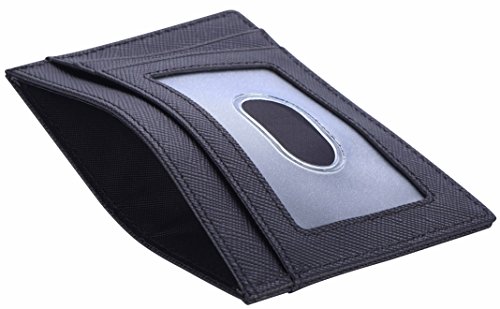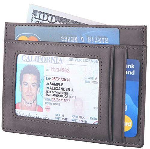 -. Feature : 100% genuine leather, sizing 4 1/2" X 3 1/8" X 1/16", perfect for your front pocket. / Extremely Practial: 4 Credit Card Slots, 1 a clear finger glide ID window, 2 slip-in pockets and 1 zipper Currency Pouch / RFID Cards Protection - Keep Identification Thief away from you and protect your personal information with inside rfid blocking shield material under frequence 13.56MHZ. / Light and Portable - Stores your carry-on essentials such as money, id cards and credit cards in one slim and lightweight front pocket wallet and never miss or lost them. / Soft and Comfortable ¡§C made of the soft genuine leather, carry in your front pocket very comfortably