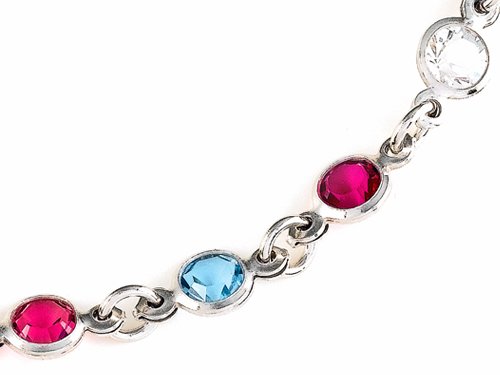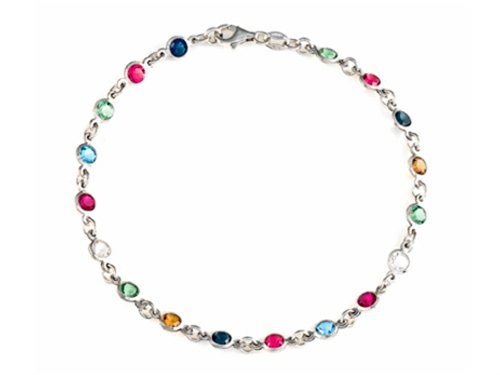 -. Title : 10 Inches Ankle Bracelet with Simulated Stones Sterling Silver