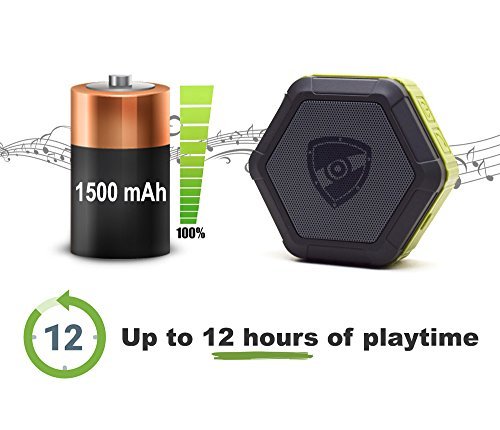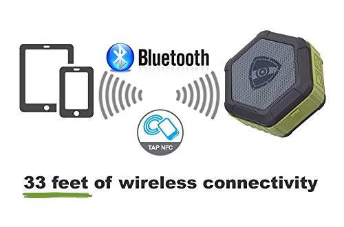 -. Feature : BLUETOOTH 4.0 TECHNOLOGY --- Connect your outdoor speaker in just seconds with a wireless range up to 33 feet away from your iPhone, iPad, Android / Windows smartphones, tablets, MP3, MP4, digital media player and Bluetooth enabled music devices / HEAVY-DUTY OUTDOOR DESIGN --- Latest IP67 waterproof red design with splash proof dustproof and shockproof functions, ideal for outdoor trips, shower / poolside, beach party, water sports, and especially outdoor activities like camping, hiking, etc. / HIGH-DEF SOUND --- Clear and crisp sound quality with a solid bass through a state-of-the-art 3W audio driver and passive subwoofer. Sounds stay clear at maximum volume / LONG PLAYTIME --- Maximum 12 hours of music playtime with a single charge and fully charged in just 3 hours. Ideal for a full day of hiking, camping, fishing, and other outdoor activities. Charging cable included / NFC TECHNOLOGY --- Tap-to-pair with NFC technology for easy and instant connection. Feature is only available for Bluetooth audio device with NFC function / This is an O.E.M. part