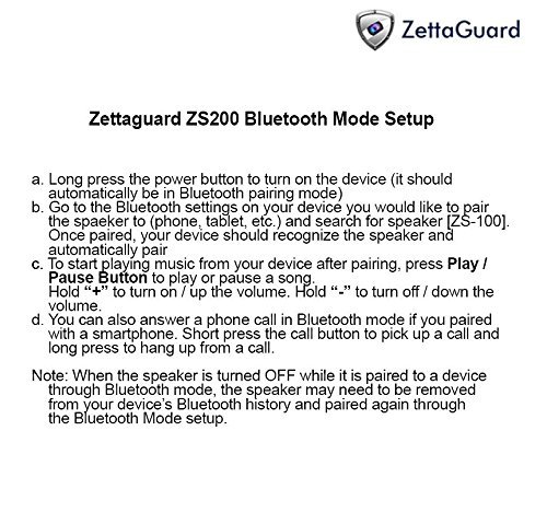 -. Title : Zettaguard ZS100 Portable Wireless Outdoor Shower Bluetooth 4.0 Speaker with IP67 Waterproof Function