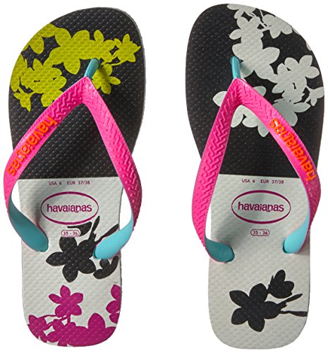 Studio : Havaianas Publisher : Havaianas Binding : Apparel Product Description The top fashion features fragrant plumerias in hot colors perfect for rising temps. our signature textured footbed adds comfort and a contrast havaianas logo on two-toned straps adds style. 0