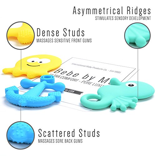 Perfect teething toys set for your little one to nibble on to relieve teething pain, and to play with during bath time. All teethers are certified and approved by our experienced pediatricians.