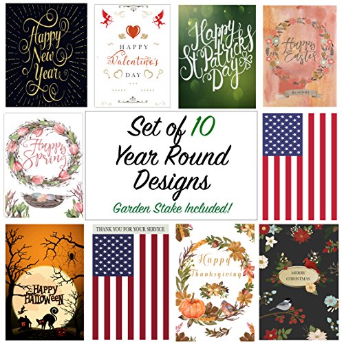- ✅ FOR EVERY HOLIDAY: The 10 garden signs are perfect for any season and celebration. In order to match your garden style to your house décor, the festive flags are all you need to celebrate Spring, Easter, Christmas, Saint Patrick’s, Halloween, Valentines, Veteran's Day, New Years, July 4th and Thanksgiving.