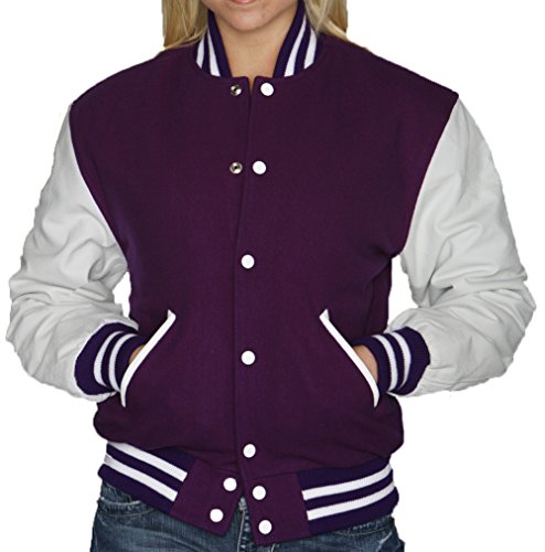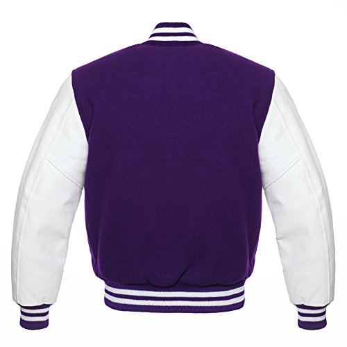 C105 Purple Wool White Leather Varsity Jacket Letterman Jacket