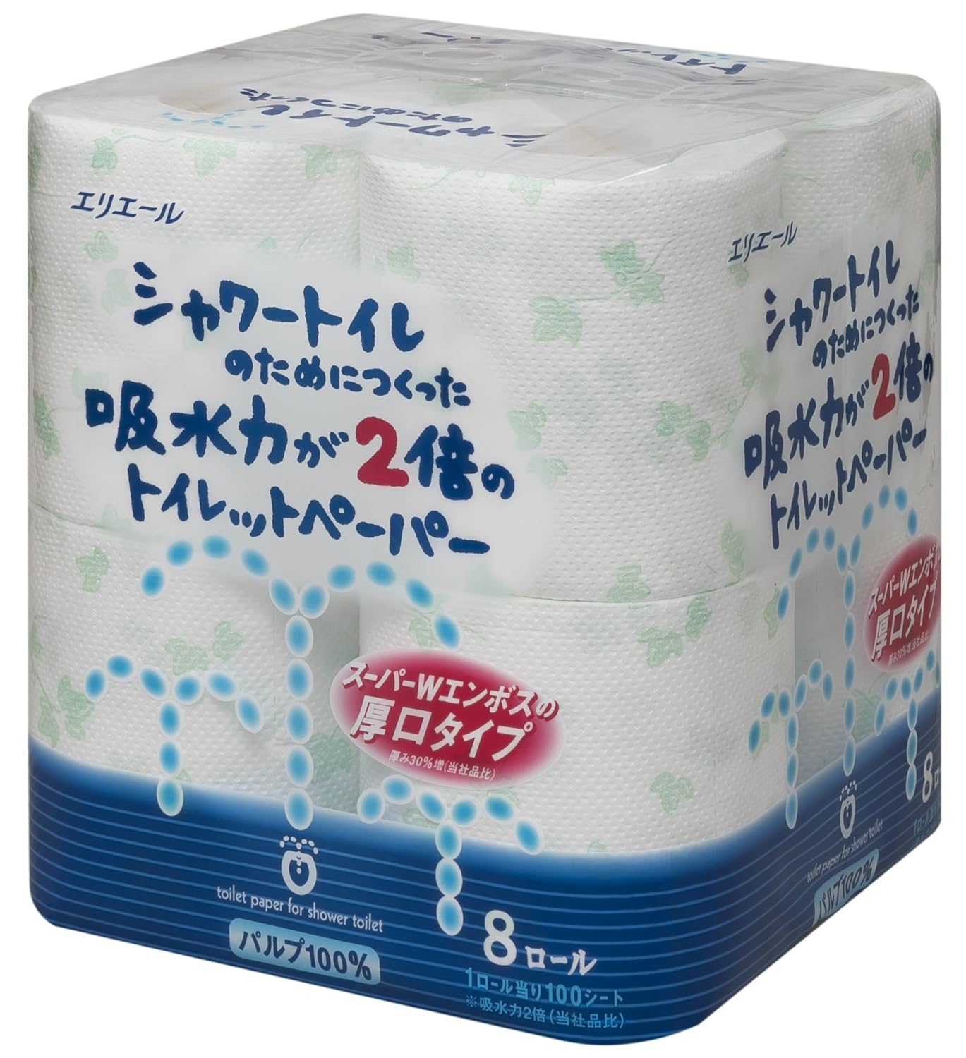●セルゾーンの大きなTip To Tip のスーパーWエンボス加工により従来のトイレットペーパーの2倍の吸水性を実現させました。(当社比)