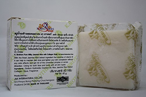 - Title : K.brothers Original Thai Pure Milky Jasmine Rice Soap Body&face Wash Natural Herbal Moisturizing Whitening with Collagen 2.1 Oz.(pack of 3 Pieces.)