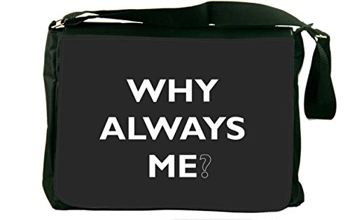 Studio : Rikki Knight LLC Publisher : Rikki Knight LLC Binding : Office Product Product Description Whether from home to the office, on a business trip or to school, the why always me black color laptop bag notebook bag messenger bag school bag keeps you comfortable and your cargo safe and sound - this bag features pockets on the outside below the flap for your cellphone, pens, iPod, notebook etc. And also a zippered compartment on the inside, with plenty of space to store your textbooks, folders, files, etc. And up to a 14 inch laptop (laptop sleeve sold separately) - the vibrant image on the front is professionally printed and will not fade or peel with time and this bag will surely be an eye catcher wherever you go with it. Disclaimer: all images are printed directly into the material - the Texture of the image will always be a flat surface. Any images that appears to be 3D, textured, or glittery are flat printed images. 0