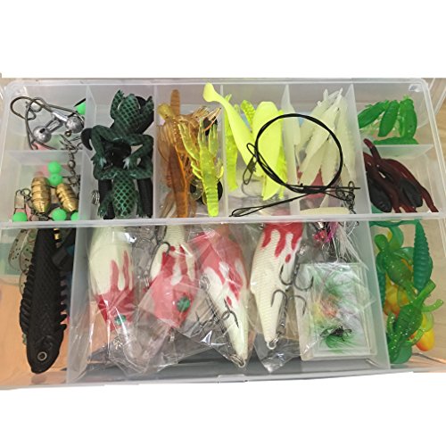 -. Feature : Our Portable Fun fishing tackle set features vivid fishing lures, sharp hooks and various fishing tackle,which makes it the powerful fishing catching seduction. / Our PortableFun Fishing Lure Set is one of the most awesome fishing lure Kit to ever hit the market.For anyone who loves catching Trout Bass Salmon,the PortableFun Fishing Lures Set is hard to miss. / saltwater lure lots, Colors will be sent by random, but not to impact the quality and quantity / This set fishing lures sea bass is vivid fishing lures, sharp hooks and various fishing tackle,which makes it the powerful fishing catching seduction / Perfect for ocean boat fishing,ocean rock fishing,ocean beach fishing,lake,river,reservion,pond and stream!Both for freshwater and saltwater Great for Bass, Perch, Panfish,Perch,Trout,even pike and salmon!This kit is best gift for your friends and families