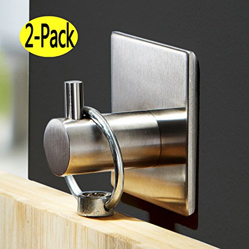 2PCS Wall Hooks for Bathroom Door Hanger Hanging 3M Adhesive Command Hooks Heavy Duty Wall Mount Clothes Hangers Stainless Steel Single Robe Hook set of 2