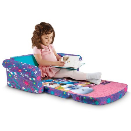 Preschoolers can sit, lounge, and relax on their very own sofa along with their favorite Disney friends with the Disney Marshmallow Flip-Open Sofa. Just the right size for toddlers, the lightweight polyurethane foam sofa with removable polyester fabric slip-cover stands about 10 inches tall, 28.5 inches wide, and is 16 inches deep. It's decorated with fun graphics, cheerful face and all his Clubhouse friends are sure to brighten any room. Kids can use it as a traditional sofa / chair or have fun flipping the seat over to turn it into a lounger. The lounger which extends to 39 inches, features vibrant and colorful graphics and the rest of the gang, for even more room to play for your aspiring Mouseketeer. This functional two-in-one sofa is a comfy spot for kids to sit, read stories, watch movies, eat snacks, play or just relax. Not only is it comfortable, but durable, and easy to clean. The slip-cover can be removed using the child proof zipper on the bottom and then machine-washed with mild soap in cold water. The Marshmallow Flip Open Sofa is a perfect birthday gift for at home play and relaxation, practical addition to your child's room, living room, playroom, cottage, vacation, daycare and sleepovers at grandma's or grandpa's house for a comfy napping spot.Feature