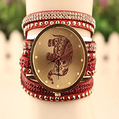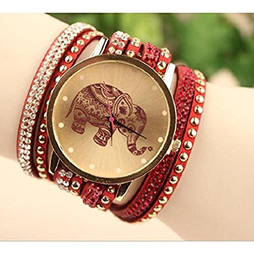 ?: Description: ?: ?: Quantity: 1 ?: Case Material: Glass ?: Dial Material:UP ?: Movement:Quartz ?: Case Shape:Round ?: Style:Casual ?: Dial Display:Analog ?: Band Material:Imitation leather ?: Band Length:39cm/15.4"inch ?: Watchcase Diameter:3.8cm/1.5"inch ?: Watchcase Thickness:0.6cm/0.2"inch ?: Color:Black,Bule,Red ?: Dress:Circle Surround Arm 2-3 ?: ?: Package Content: ?: 1PC Velvet Diamond Bracelet Watch Ladies Watches High Elephant Pattern(without retail package) 0