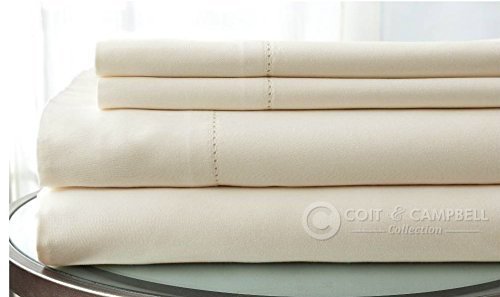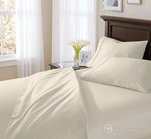 Coit & Campbell Premium Hotel Collection Solid 600 Thread Count Deep Pocket 100% Cotton Sateen Sheet Set, Queen Ivory