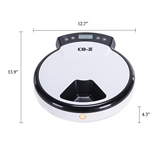 -. Title : CO-Z Automatic Pet Feeder 5 x 240ml Meal Trays for Small Cats & Dogs, for Dry & Semi-Wet Food, Dual Power Systems